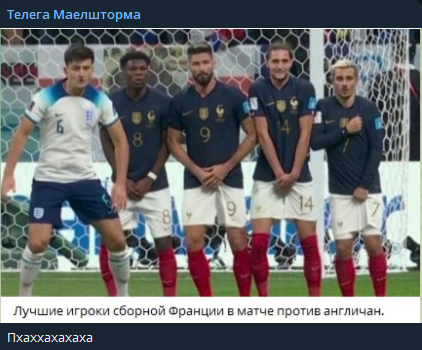 За несколько публикаций до данного сообщения Maelstorm запостил мем с лучшими игроками сборной Франции в матче против сборной Англии на чемпионате мира по футболу в Катаре.