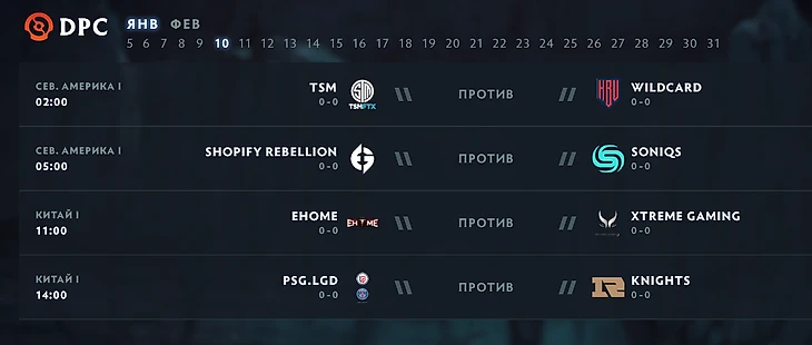 Первым матчем Северной Америки станет игра TSM – Wildcard – в 2:00 10 января. В этот же игровой день новая команда Arteezy сыграет против Soniqs. Первый матч B8 запланирован на 14 января – в 5:00 команда сыграет против Wildcard.