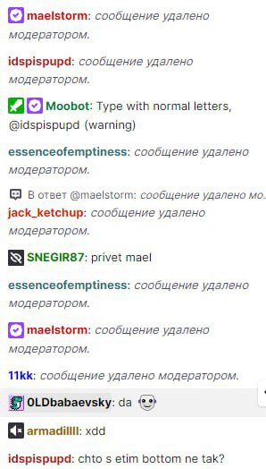 В первые 15 минут стрима в чате банило всех пользователей, которые отправляли сообщения на кириллице. Из-за этого зрителям какое-то время пришлось общаться с помощью транслита.