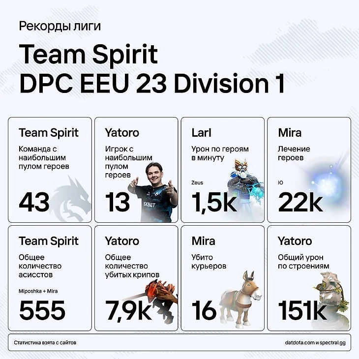Yatoro обладатель самого большого пула героев. Spirit поделилась рекордами DPC-сезона