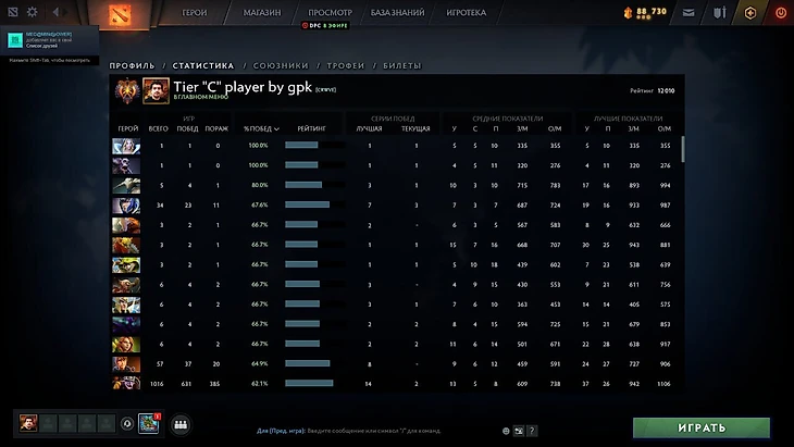 Скриншотом 18-летний игрой поделился в своем телеграм-канале, иронично взяв никнейм «Tier «C» player by gpk», отсылающий к тому, как Данил «Gpk» Скутин поместил Поторака в предпоследний тир мидеров Европы.