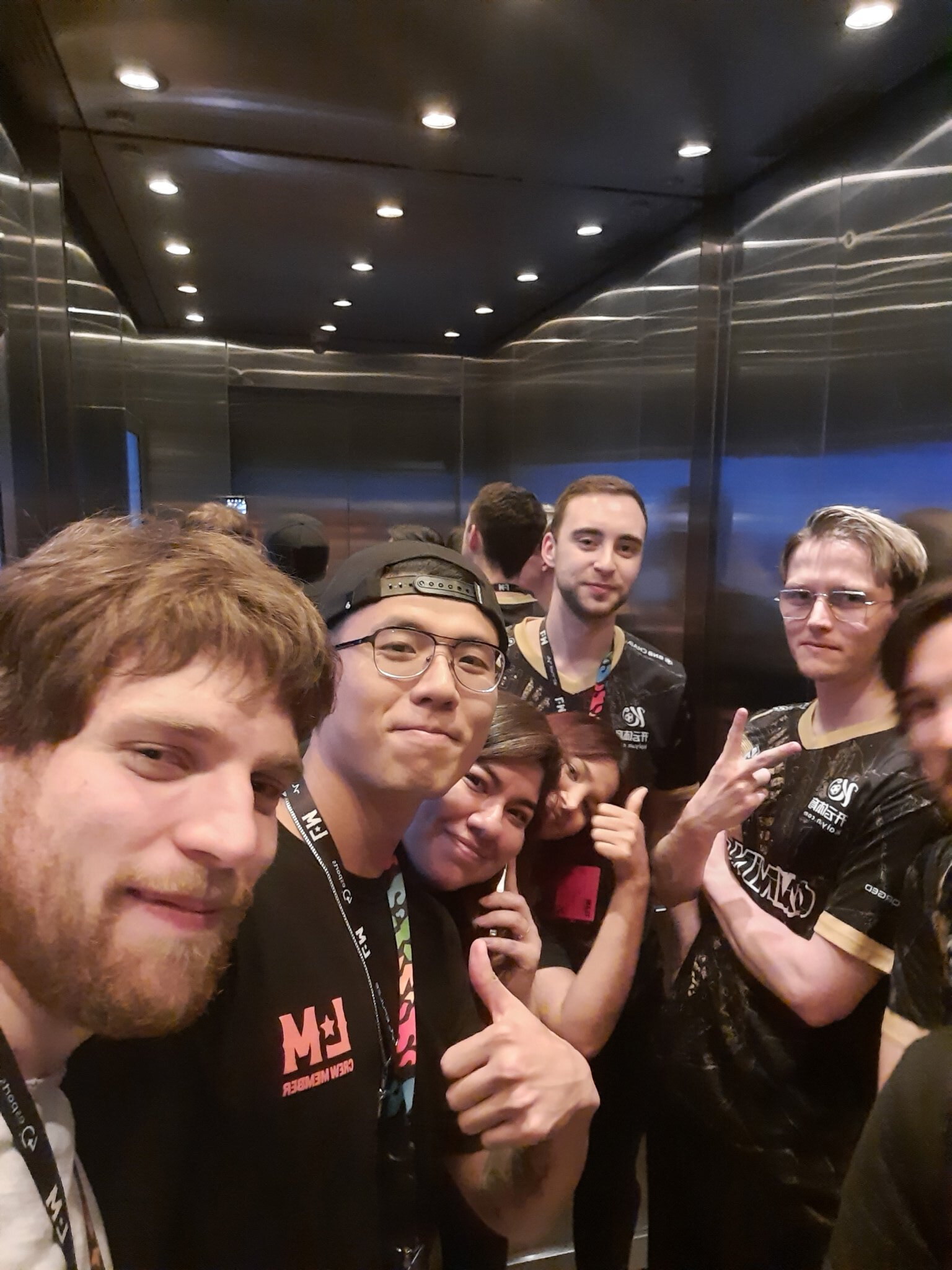 Саппорт команды опубликовал фото из лифта, назвав инцидент «интересным опытом». Игроки просидели взаперти 15 минут.