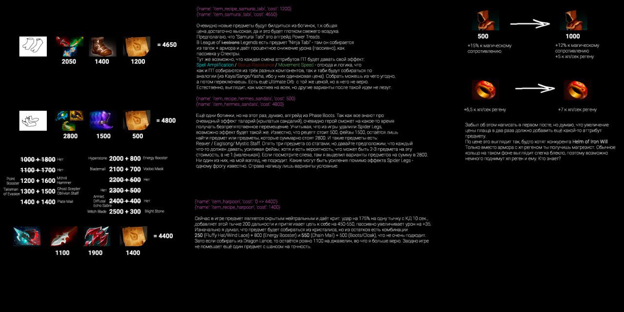 В список ожидаемых предметов попали улучшенные версии Power Treads и Phase Boots, добавление Гарпуна, и изменения показателей других предметов.