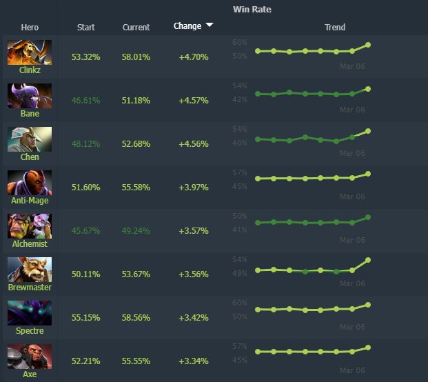 Доля побед некоторых героев значительно изменилась после выхода патча 7.32e в Dota 2.