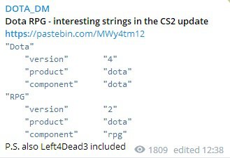 В коде Дота упоминается рядом с RPG, далее идут номера версий и упоминания продукта и компонента. Также в коде есть новые упоминания Left 4 Dead 3.