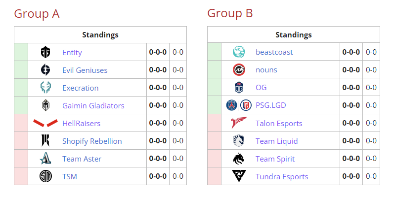 HellRaisers с Gladiators, Entity и EG попали в группу A.