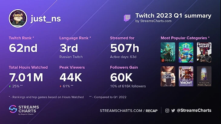Ярослав «NS» Кузнецов стал третьим по популярности русскоязычным стримером.