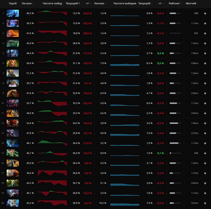 Топ-20 героев с наименьшим винрейтом в патче 7.33.