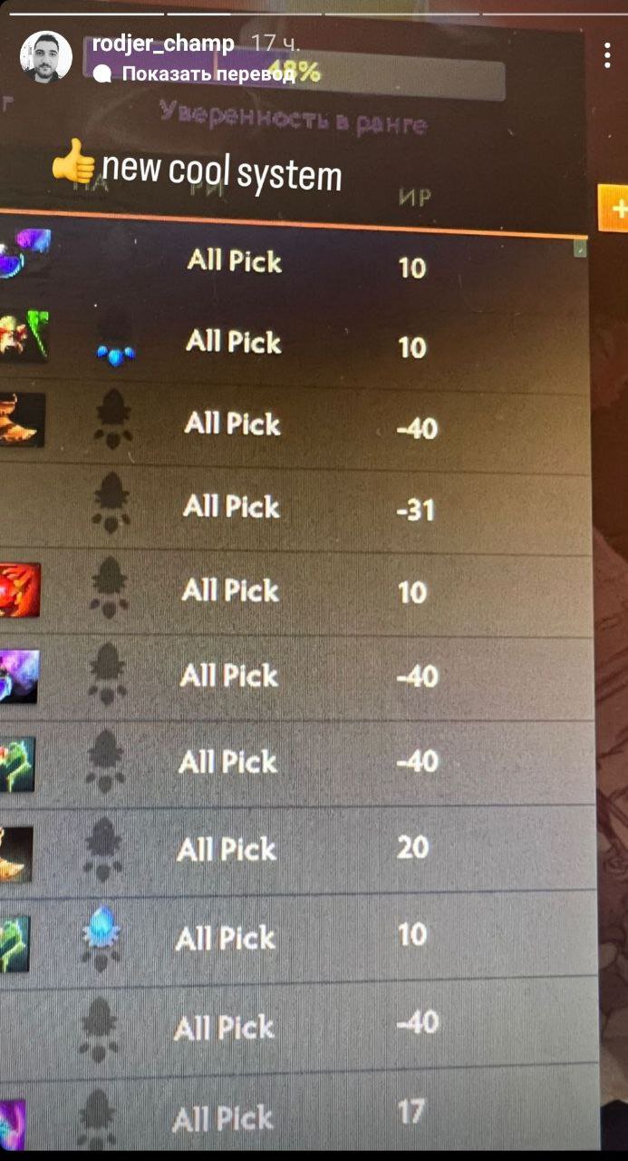 Киберспортсмен Владимир «Rodjer» Никогосян показал, сколько ммр он теряет за игру после введения рейтинговой системы Glicko.