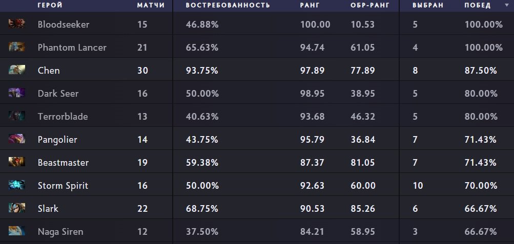 У Чена лучший винрейт среди героев, которых пикнули более 5 раз – 87,5% за 8 игр.