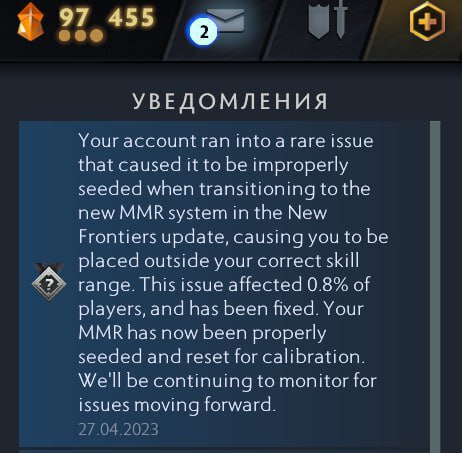 Игроки получили уведомление с объяснением причины рекалибровки в Доте.