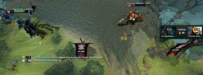 Керри Gladiators типнул Miero, а тот написал «EZ» в общий чат.
