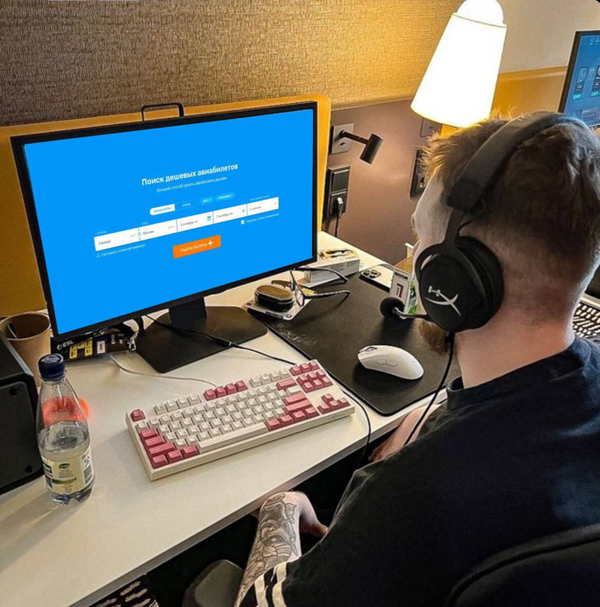 Киберспортсмен выложил фото монитора со страницей Aviasales, на которой продаются авиабилеты.