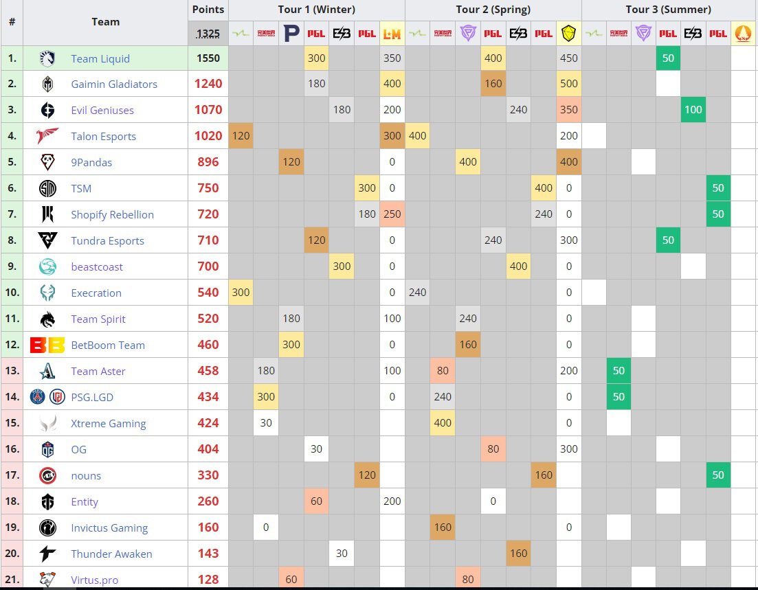 Разработчики Dota 2 обновили рейтинг у команд, который они получили в результате выступления в DPC-лигах и мейджорах.