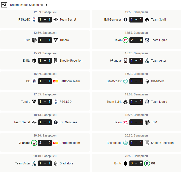 13 матчей DreamLeague Season 20 12 июня были сыграны вничью 1:1.