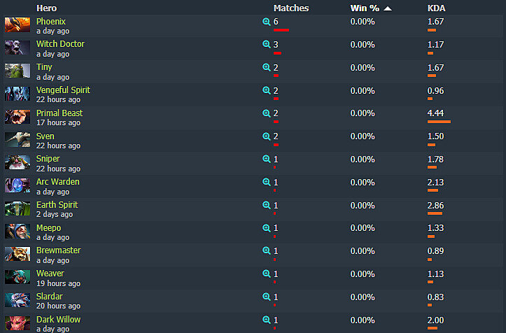 Это худший результат среди всех персонажей. Нулевой винрейт также у Витч Доктора, которого пикнули 3 раза