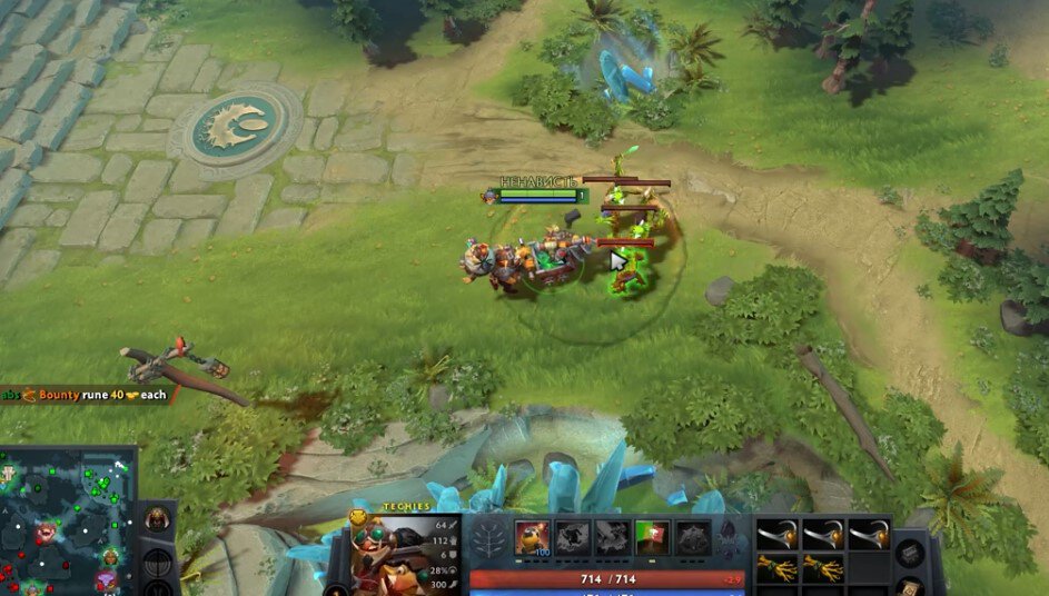 Techies анимацией «таблички» может стопить вражеских крипов на линии и не получать урон