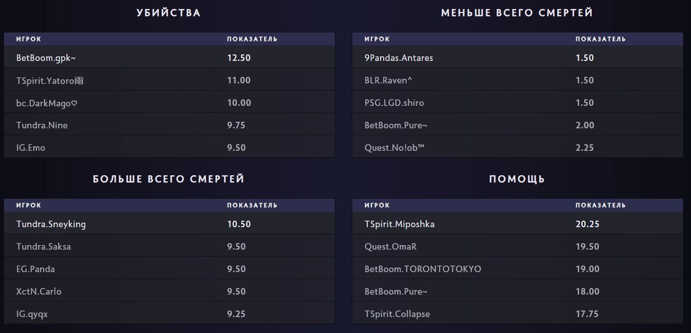 Лидером по среднему числу ассистов является Ярослав «Miposhka» Найденов – 20,25.