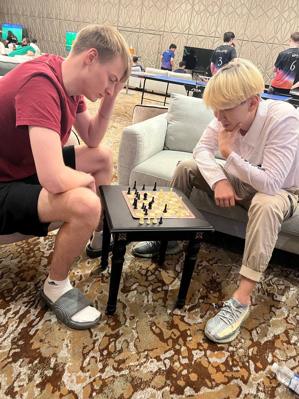 Лука «Lukawa» Насуашвили опубликовал фото, на котором Александр «Torontotokyo» Хертек и Анатолий «Boolk» Иванов играют в шахматы.