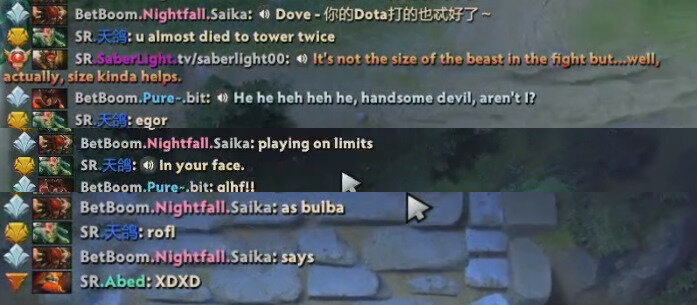 На 20 минуте Найтфолл сам решил подшутить над оппонентами, когда ему не дали rampage, и написал в общий чат: «Что за фигня, брат?»