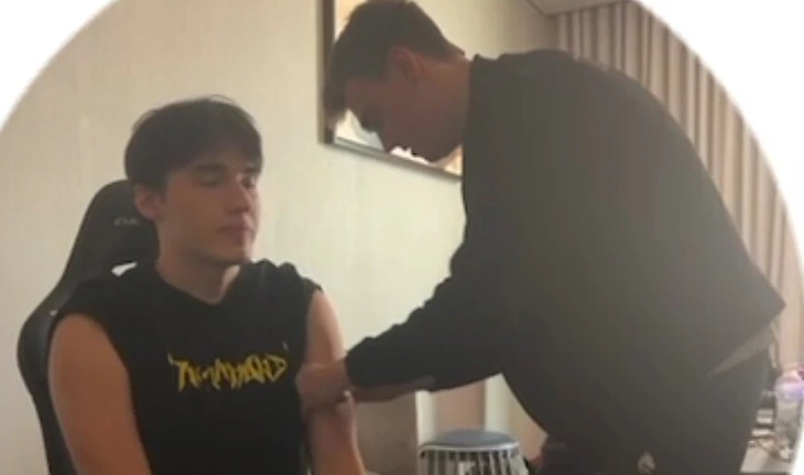 Мипошка сделал массаж плеч Коллапсу перед игрой с Aster на Riyadh Masters.
