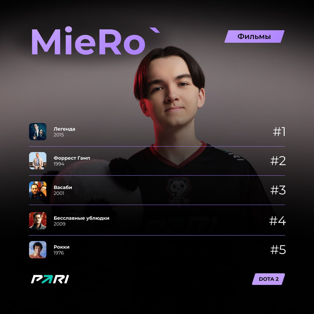 Miero назвал любимые фильм – «Рокки», «Форрест Гамп», «Бесславные ублюдки»