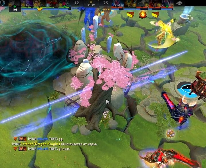 Сразу после падения трона Lorenof вышел с сервера, не написав привычное gg. Для сравнения, тиммейт Мельника перед тем, как покинуть игру, и написал gg, и пожелал оппонентам удачи дальше.
