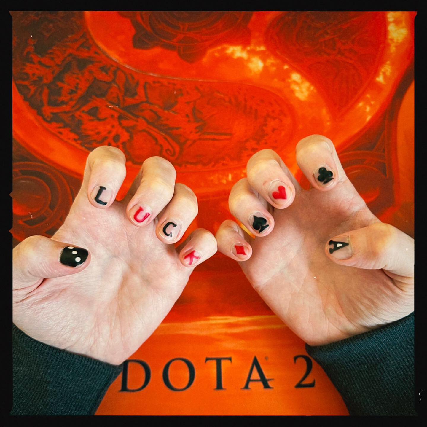В прошлый раз киберспотсмен сделал маникюр с надписью «Luck» и мастями карт.