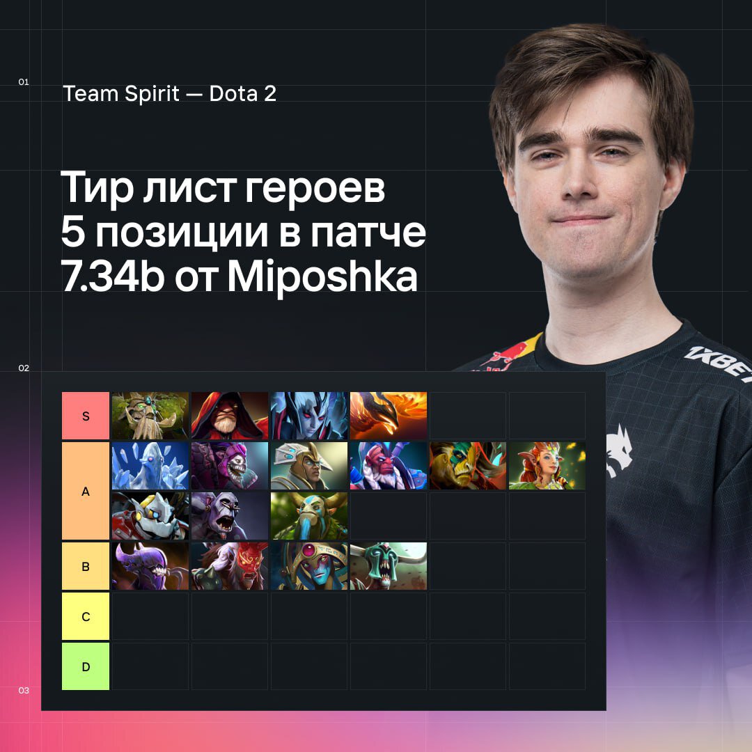 Ярослав «Miposhka» Найденов составил список героев на «пятую позицию» в патче 7.34b.