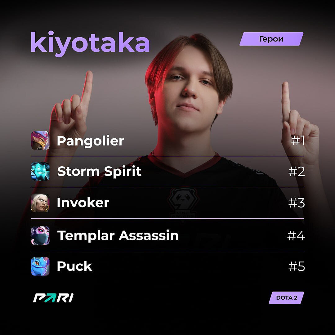 На первое место мидер 9Pandas поставил Пангольера, дальше в топ-5 идут Storm Spirit, Invoker, Templar Assassin и Puck.