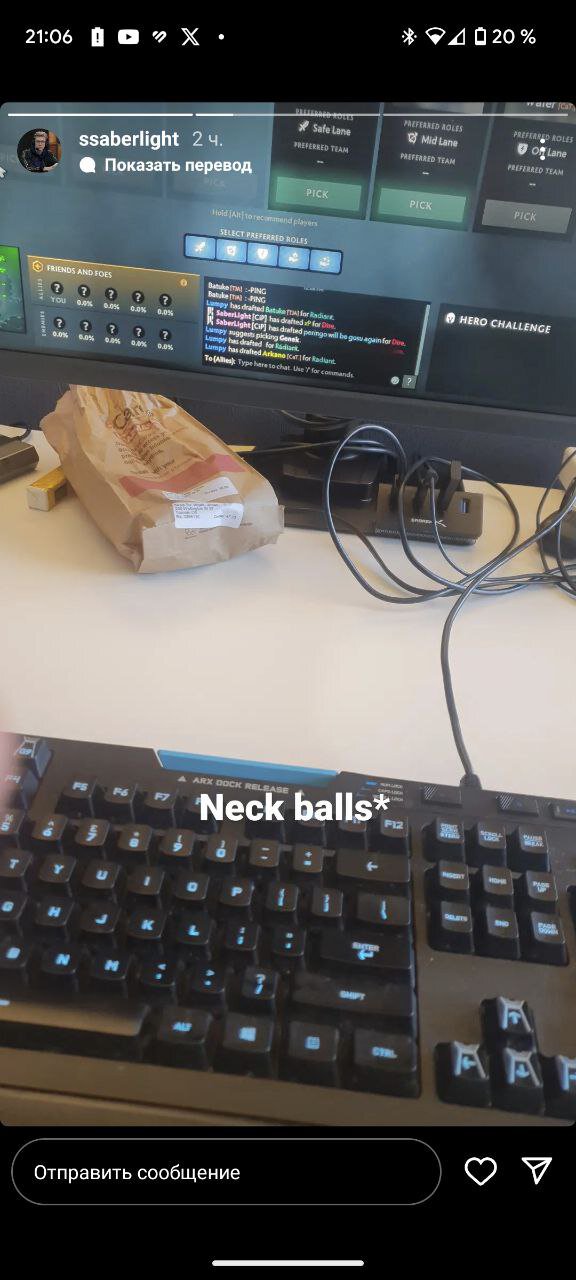 Позже киберспортсмен добавил, что имел в виду гланды, а также то, что заболел тонзиллитом (ангиной).