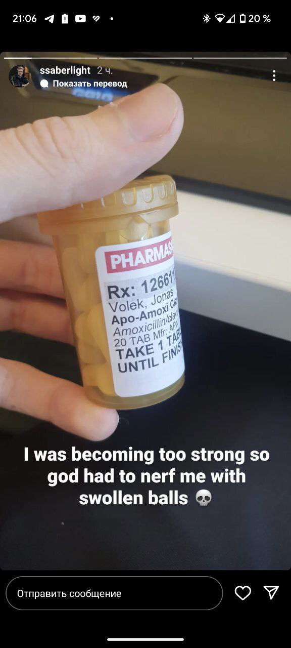 «Я становился слишком сильным, поэтому Бог испортил мне жизнь опухшими шарами», – написал Йонас «Saberlight» Волек.