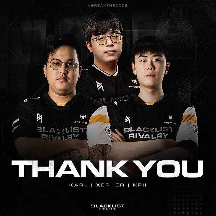 Мидер Карл «Karl» Балдовино, оффлейнер Дэмиен «Kpii» Чок и помощник тренера Кенни «Xepher» Део покинули Blacklist International. Их контракты подошли к концу и не будут продлеваться. Об этом сообщил твиттер-аккаунт организации.