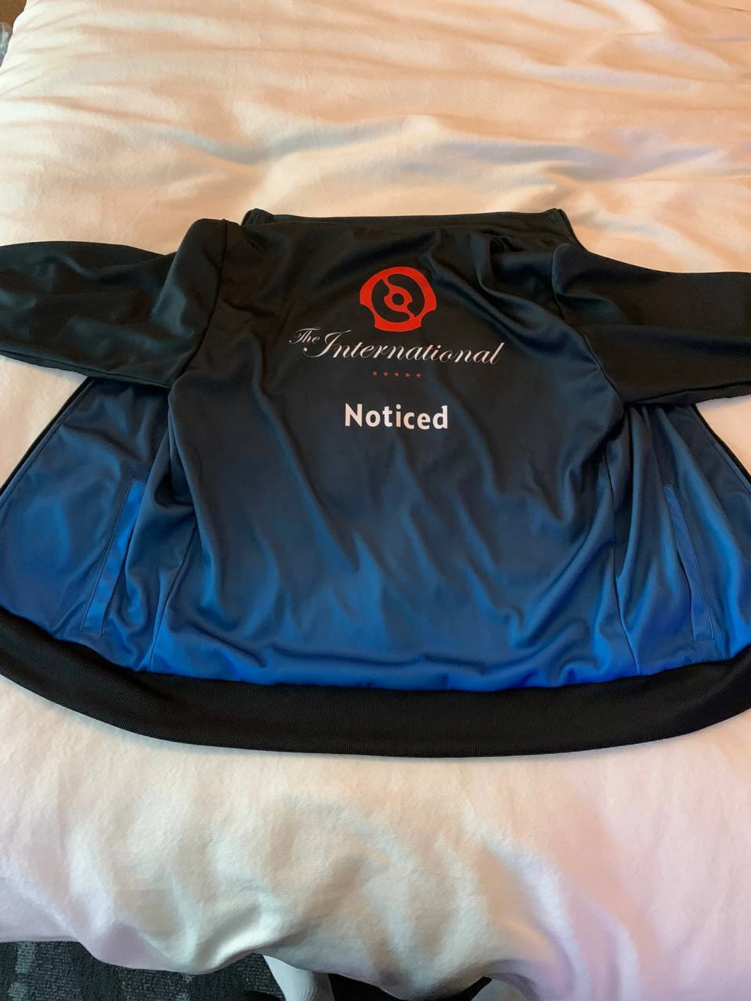 На фото показаны именной свитшот Нотисда и кастомная толстовка с орнаментом к TI12.
