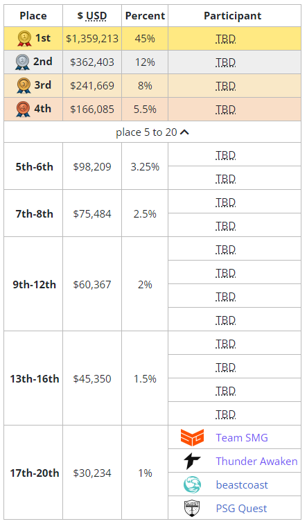 Победитель The International 2023 получит 45% от призового фонда, последние места – 1%