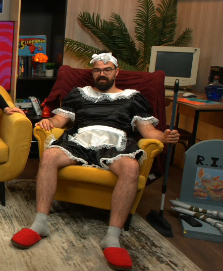 Тимур «Травоман» Хафизов переоделся в костюм горничной, так как занял последнее место в конкурсе прогнозов в рамках комьюнити-каста TI12 «В гостях у Травомана».