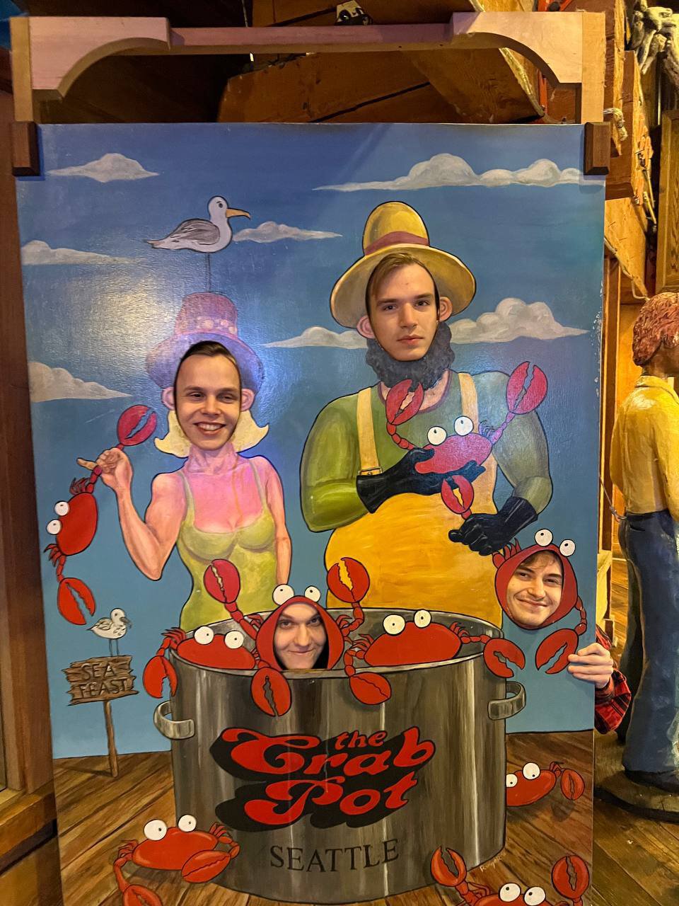 Ramzes, Dyrachyo, Pure и Kiyotaka сделали веселое фото в крабовом ресторане.