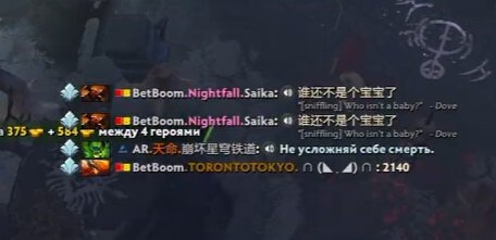 После того, как BetBoom Team забрала первого Рошана, саппорт команды Александр «Torontotokyo» Хертек написал тайминг Аегиса в общий чат: «2140».