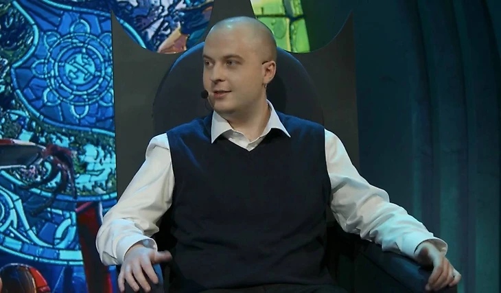 Дмитрий «UnderShock» Большаков пришел в студию аналитики после второй карты гранд-финала TI12 уже без волос.