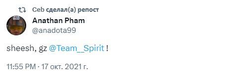 Ceb сделал репост твита Аны о победе Spirit на TI10.