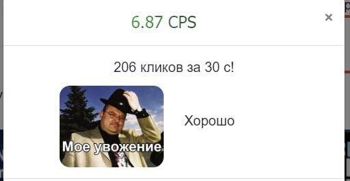 Дмитрий «Korb3n» Белов сделал 206 кликов за 30 секунд в клик-тесте – 6,87 кликов в секунду в среднем.