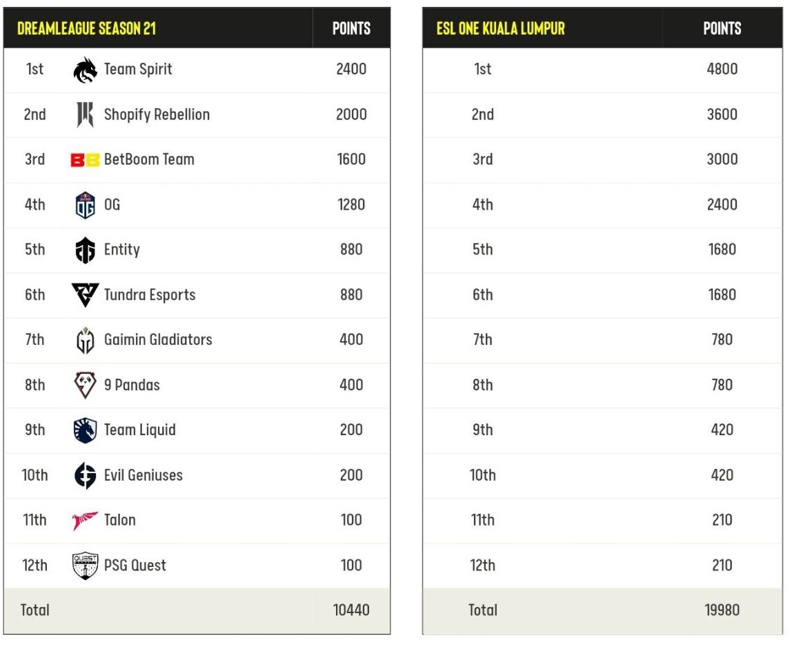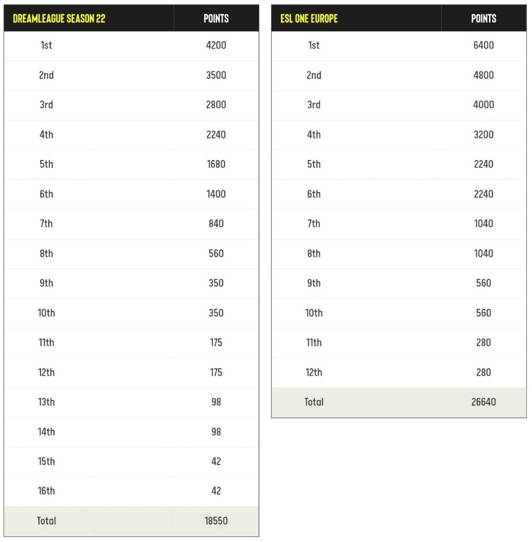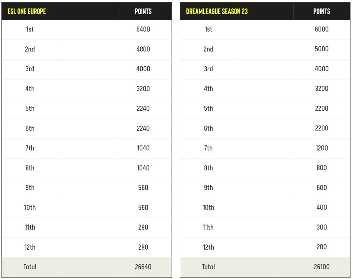 Победитель ESL One Europe заработает 6,4 тысячи EPT-очков, что на 1,6 тысячи больше, чем победитель ESL One Kuala Lumpur.