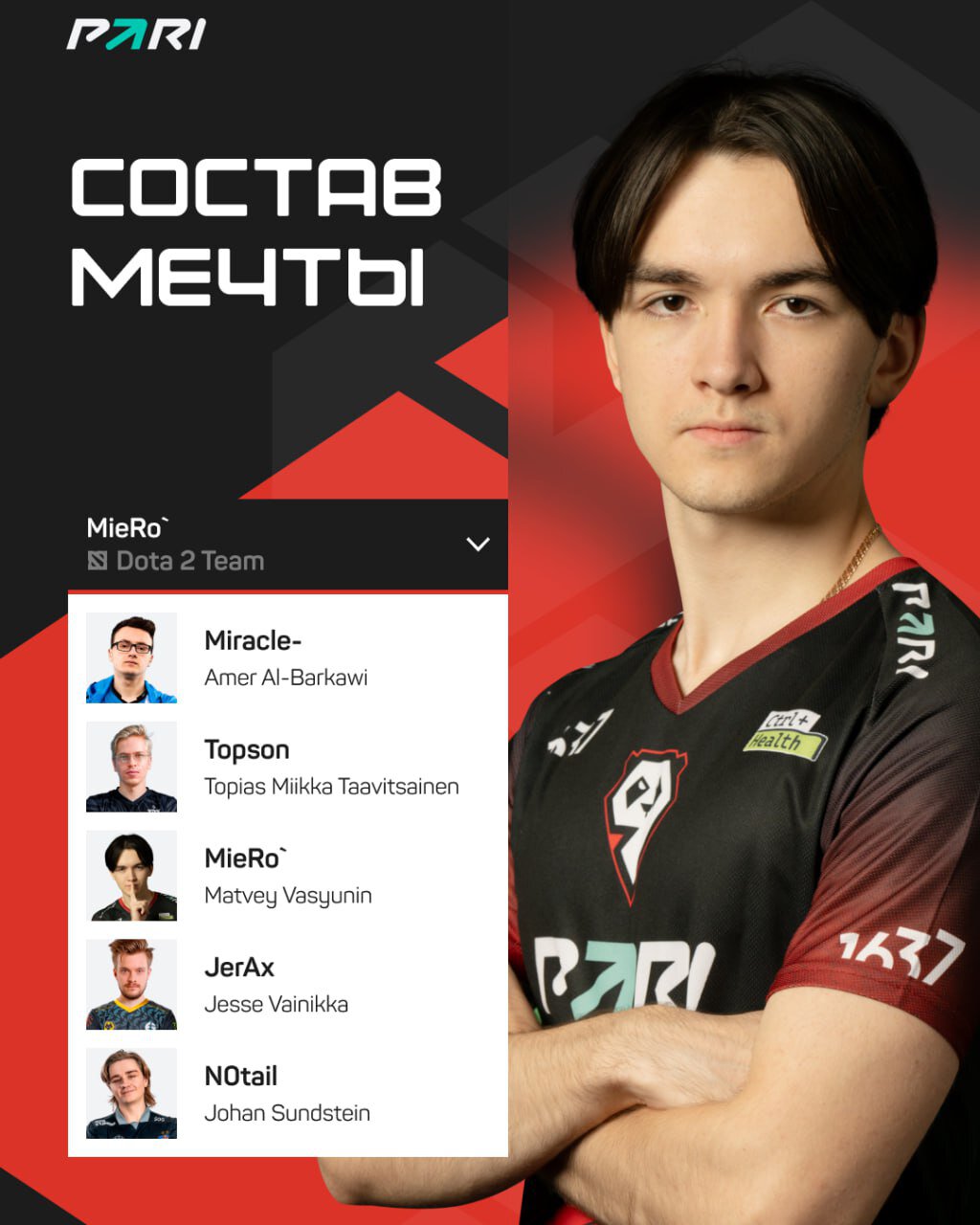 Матвей «Miero» Васюнин включил себя в свою же команду мечты по Доте.