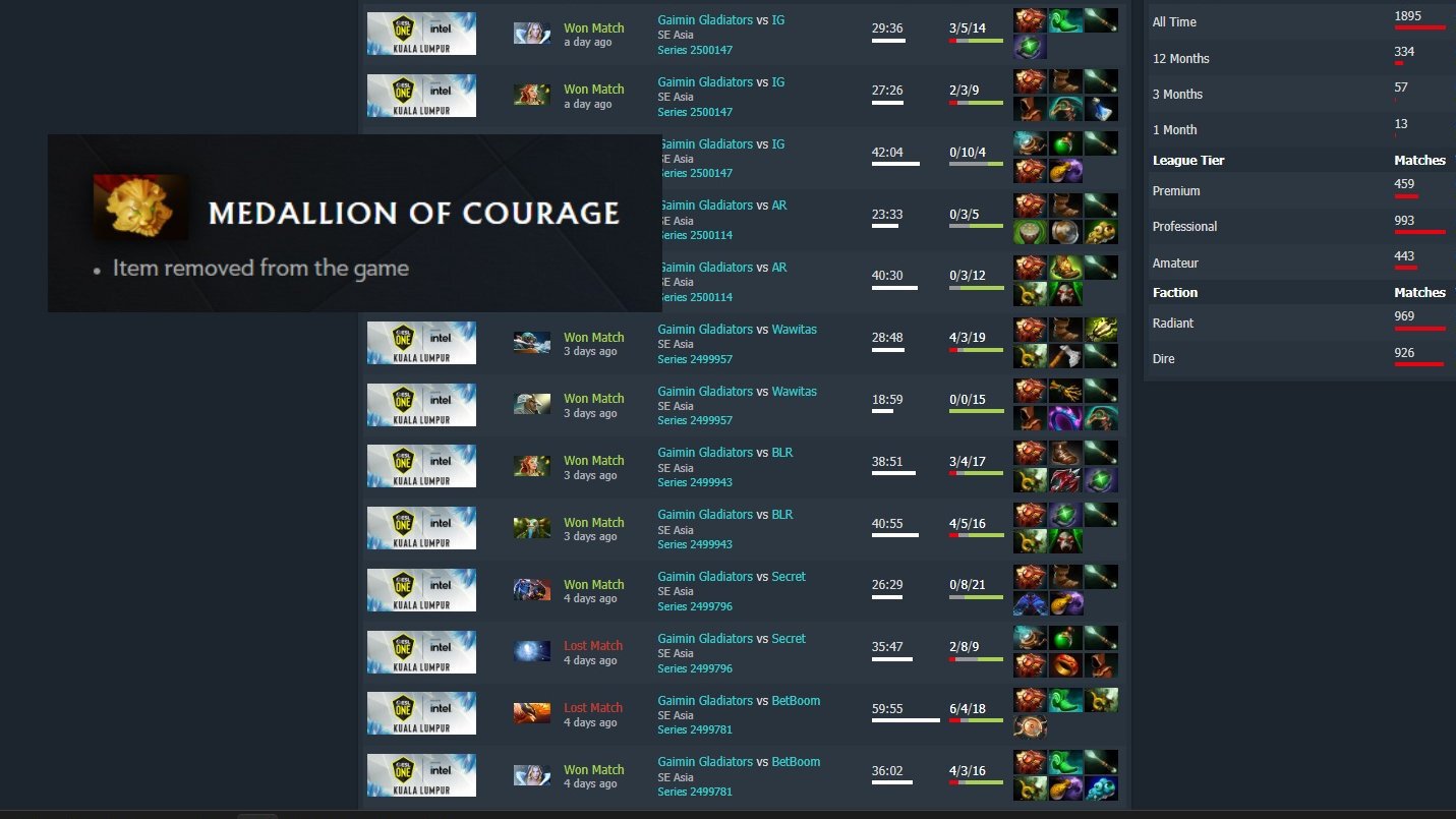 Саппорт Gladiators покупал ее во всех 13 картах на ESL One Kuala Lumpur. За последние 30 карт он купил Медаль 24 раза.
