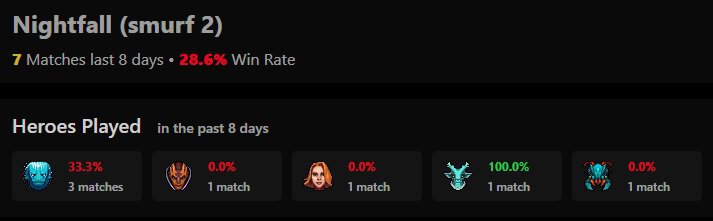 На основном аккаунте 3 матча на керри без побед за 8 дней.