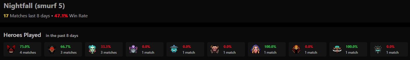 На смурфе Найтфолла сыграно 14 из 17 игр на оффлейне.