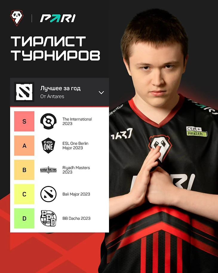 Также в тир-лист Владислава «Antares» Кертмана вошли ESL One Berlin Major, Riyadh Masters, The Bali Major и BetBoom Dacha.