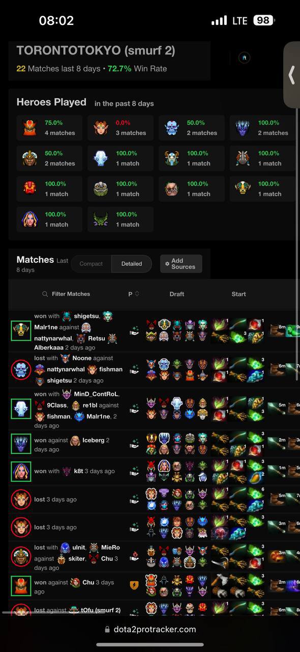 Винрейт на смурф-аккаунте саппорта BetBoom Team до блокировки составлял 72,7, всего было сыграно 22 матча.