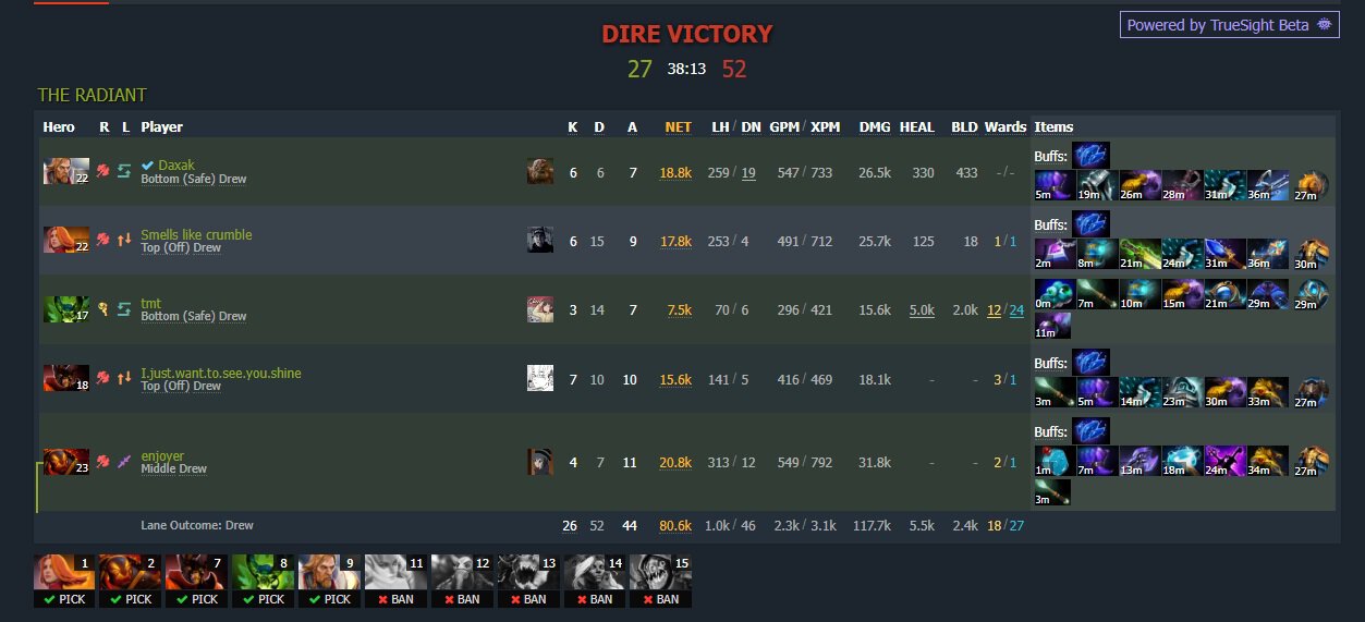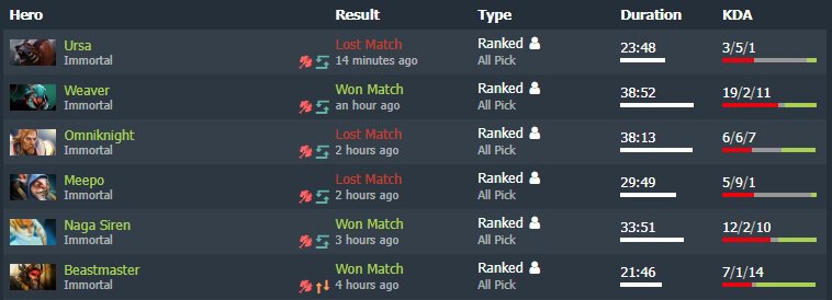 На данный момент он провел 6 матчей, 5 из которых сыграл на керри и один в оффлейне.