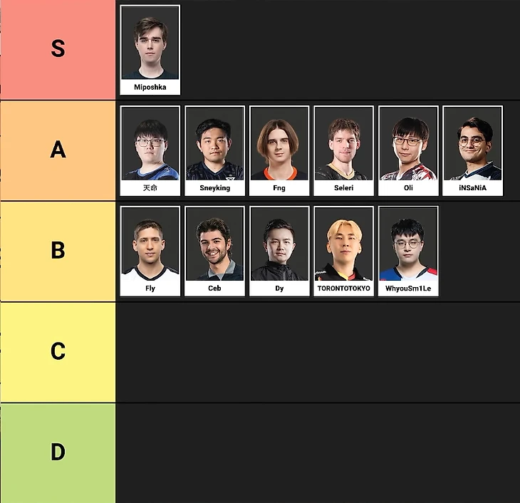В A-тир попали 天命 (Тиан Мин), Sneyking, Fng, Seleri, Oli и Insania.